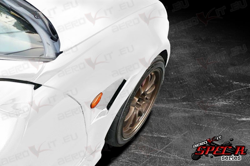 The Aerokit Spec R series fenders are designed with racing in mind. Lighter FRP fenders and also enough space for wider rims, the perfect combo for all track fanatics. Some of the Aerokit Spec R fenders also have vents to maximise ‘clean air’ under the arches. Reinforced with extra fibers in impact zones to enhance durability.